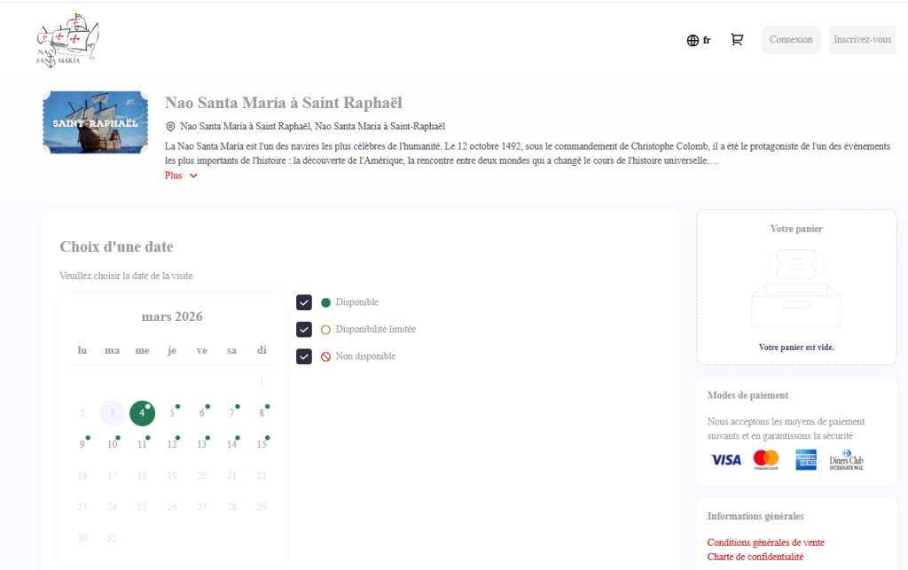 Pendant son séjour à Saint-Raphaël, le public pourra monter à bord et parcourir les ponts pour découvrir ses détails, ses gréements et ses manœuvres, ainsi que la vie à bord et la traversée de la flotte colombienne de 1492, l’une des plus célèbres de l’histoire.