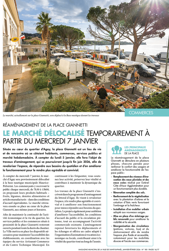 Modification de l’emplacement du marché d’AGAY du 7-01 jusqu’à fin JUIN