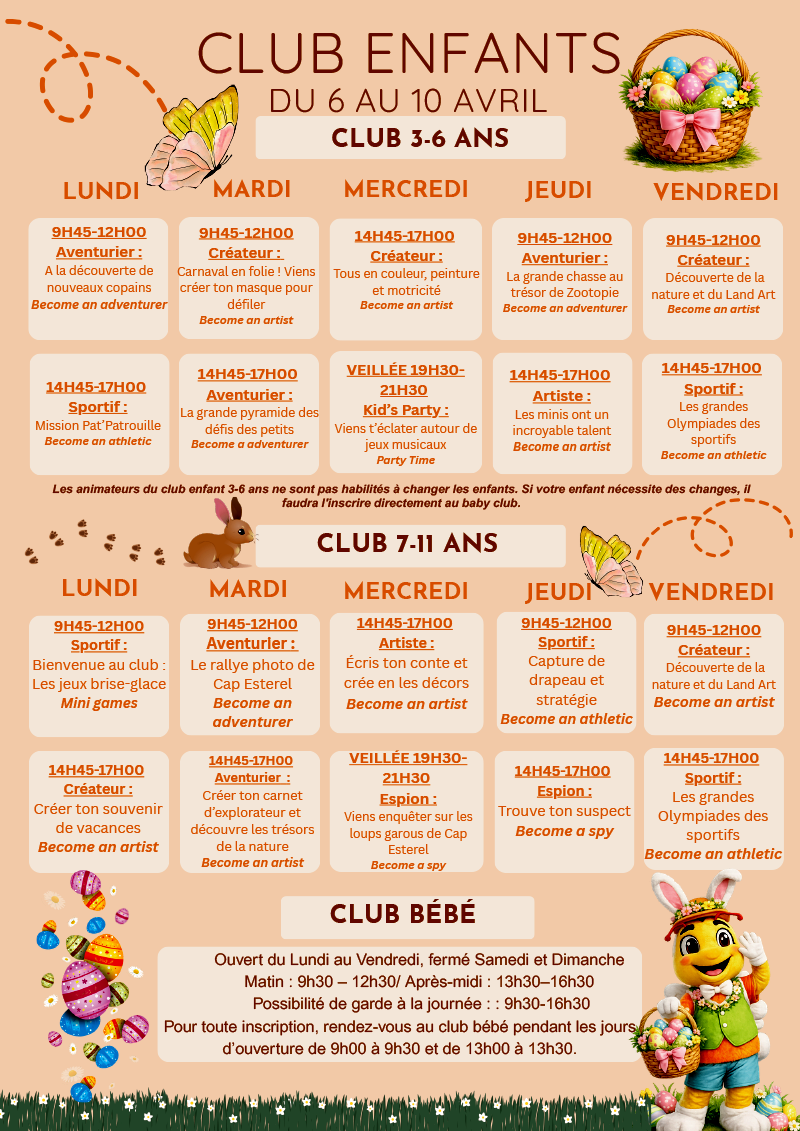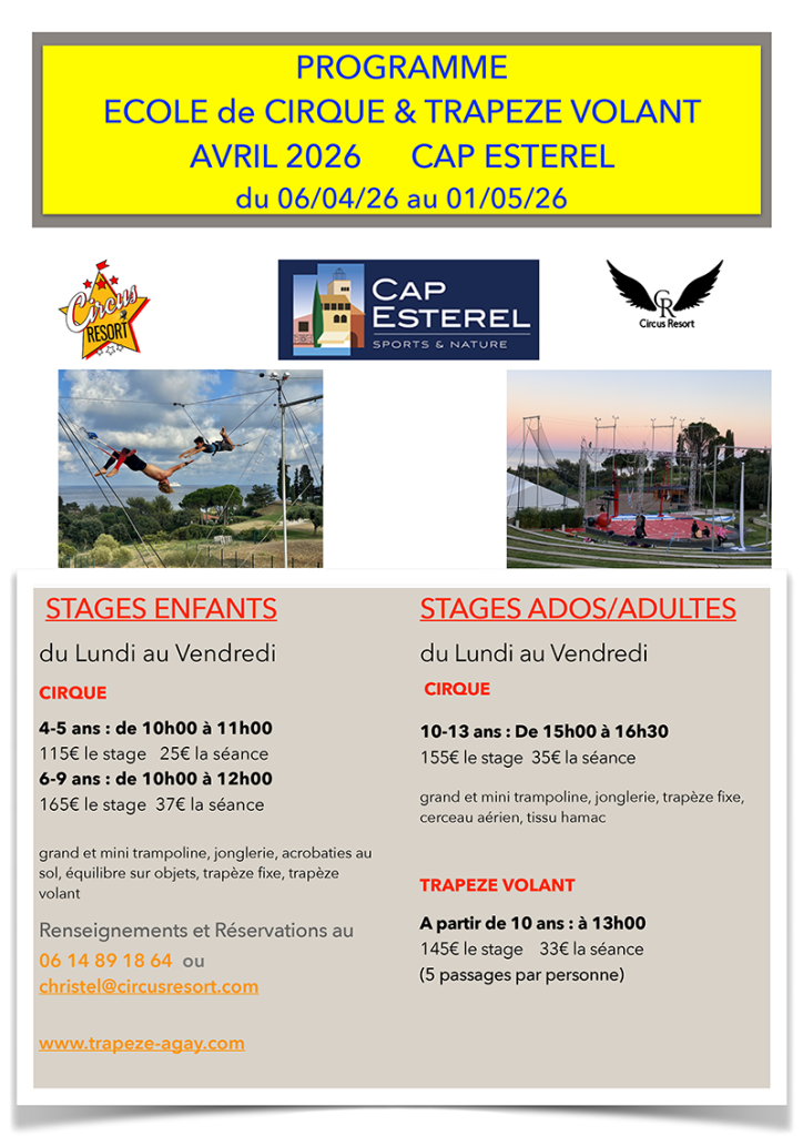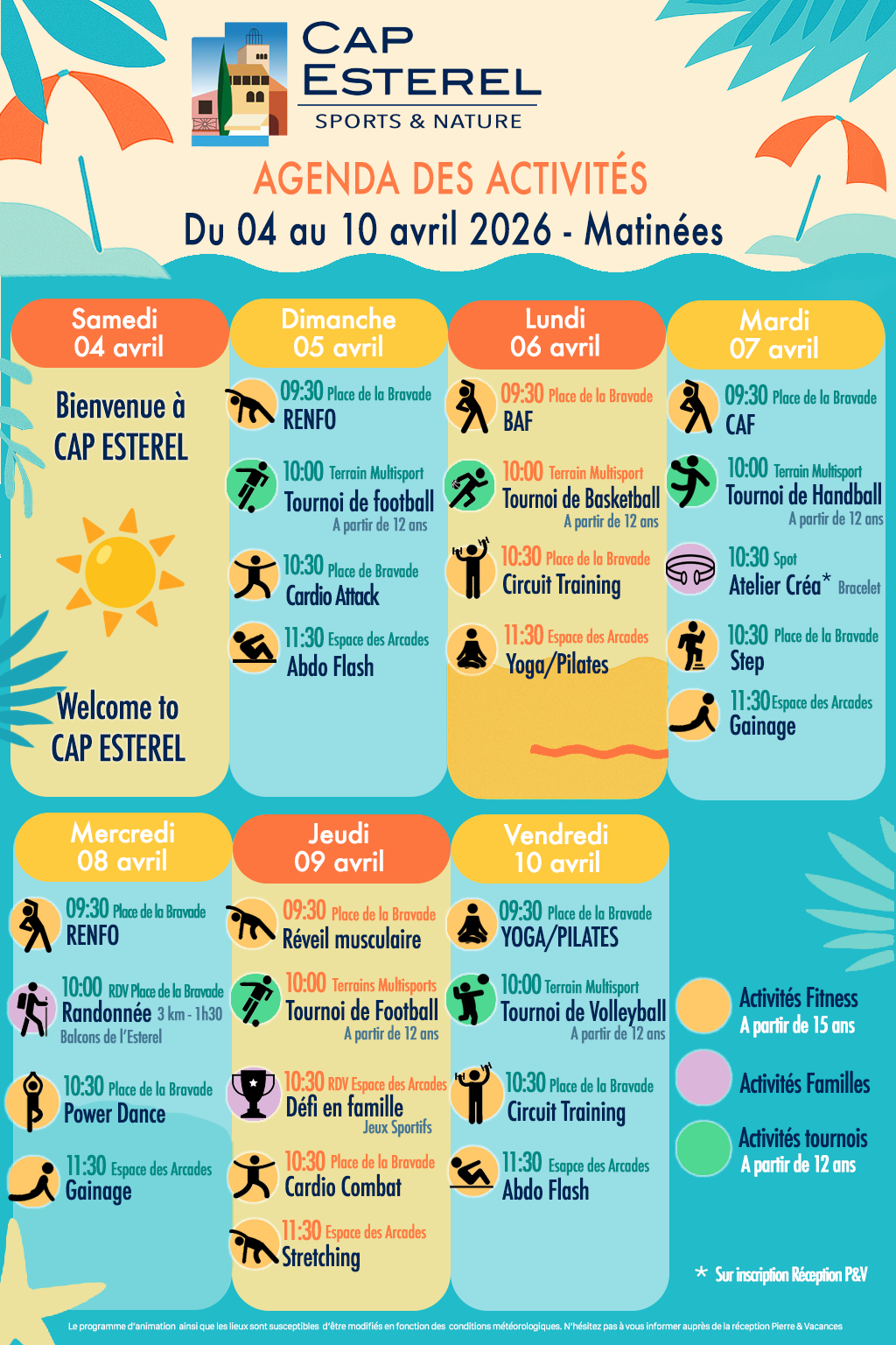 Voici le premier programme 2026 des animations gratuites pour les propriétaires et les locataires pour la semaine du 4 au 10 avril, ainsi que les animations payantes proposées par les partenaires de CAP ESTEREL.