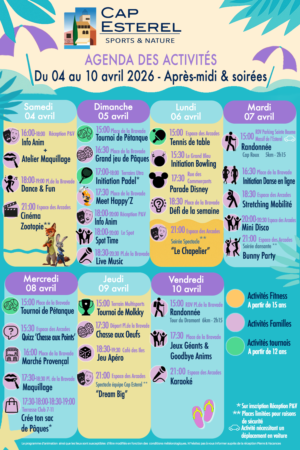 CAP ESTEREL : Agenda des animations du 4 au 10 avril