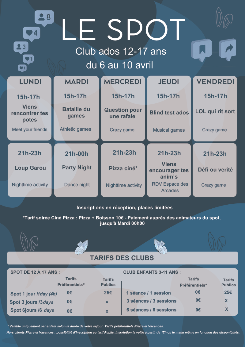 Les animations des CLUBS ENFANTS & ADOS sont organisées par Pierre & Vacances,