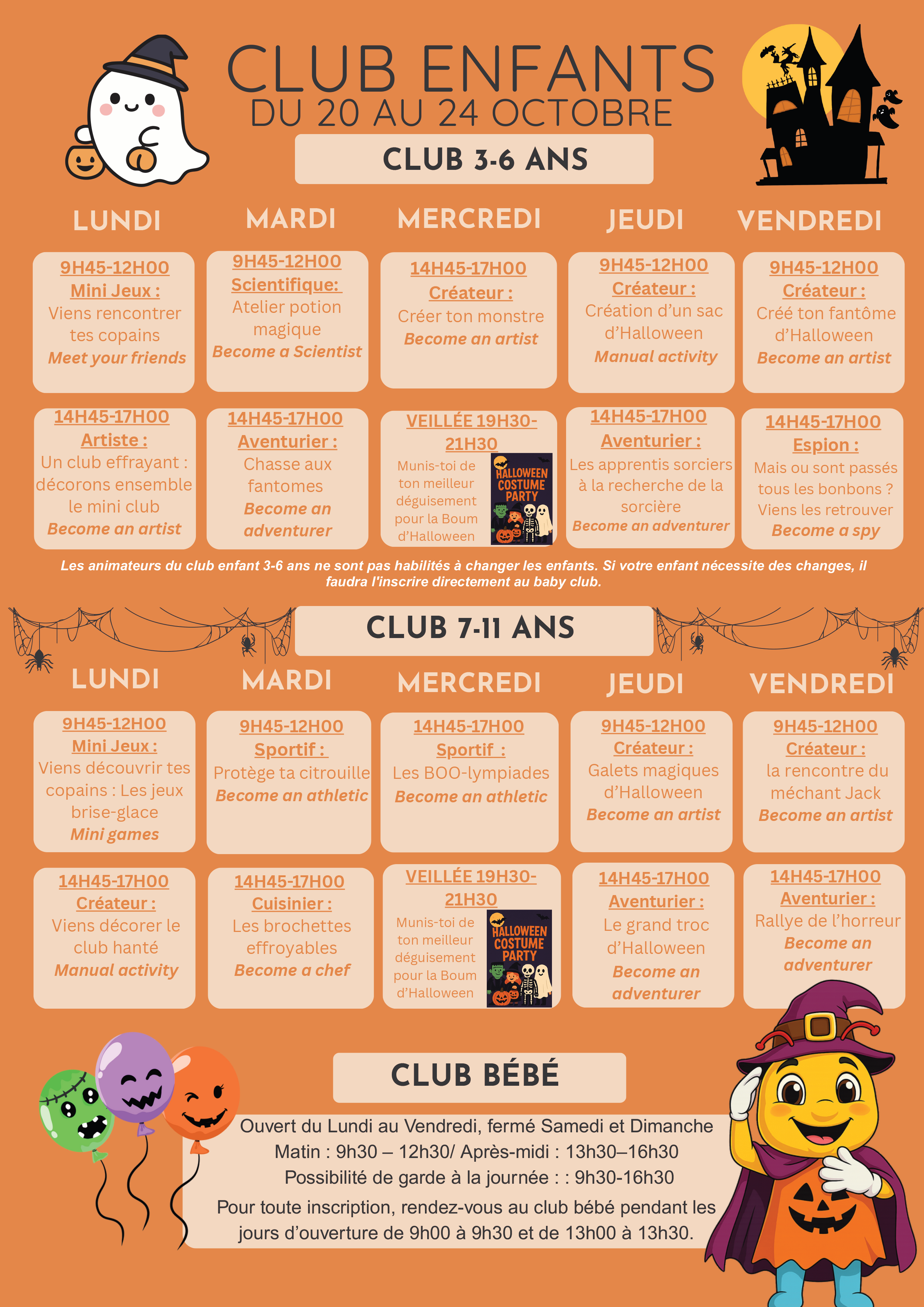 Pour les Clubs enfants et Ados, organisés par P&V >> inscriptions obligatoires en fonction des places disponibles uniquement à la réception de P&V. Animations payantes.